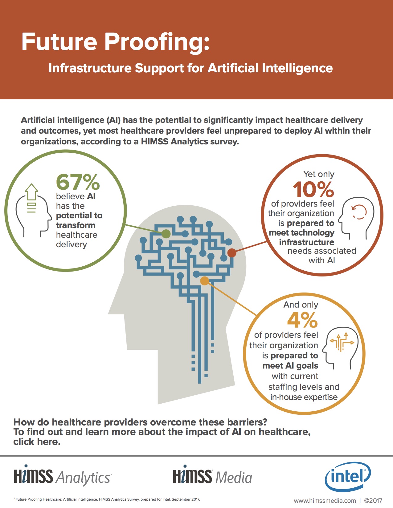 Artificial intelligence (AI) has the potential to significantly impact healthcare delivery and outcomes, yet most healthcare providers feel unprepared to deploy AI within their organizations, according to a HIMSS Analytics survey. How do healthcare providers overcome these barriers? To find out and learn more about the impact of AI on healthcare, click here.