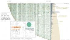 How's this for big data? This chart visualizes every visit for each of nearly 30,000 patients in an ACO, showing the quantity of data that accrues over the course of a year as the episodes of care add up.